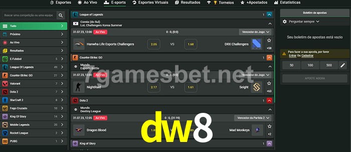 O dw8 oferece uma grande seleção de opções de apostas em e-sports com probabilidades competitivas